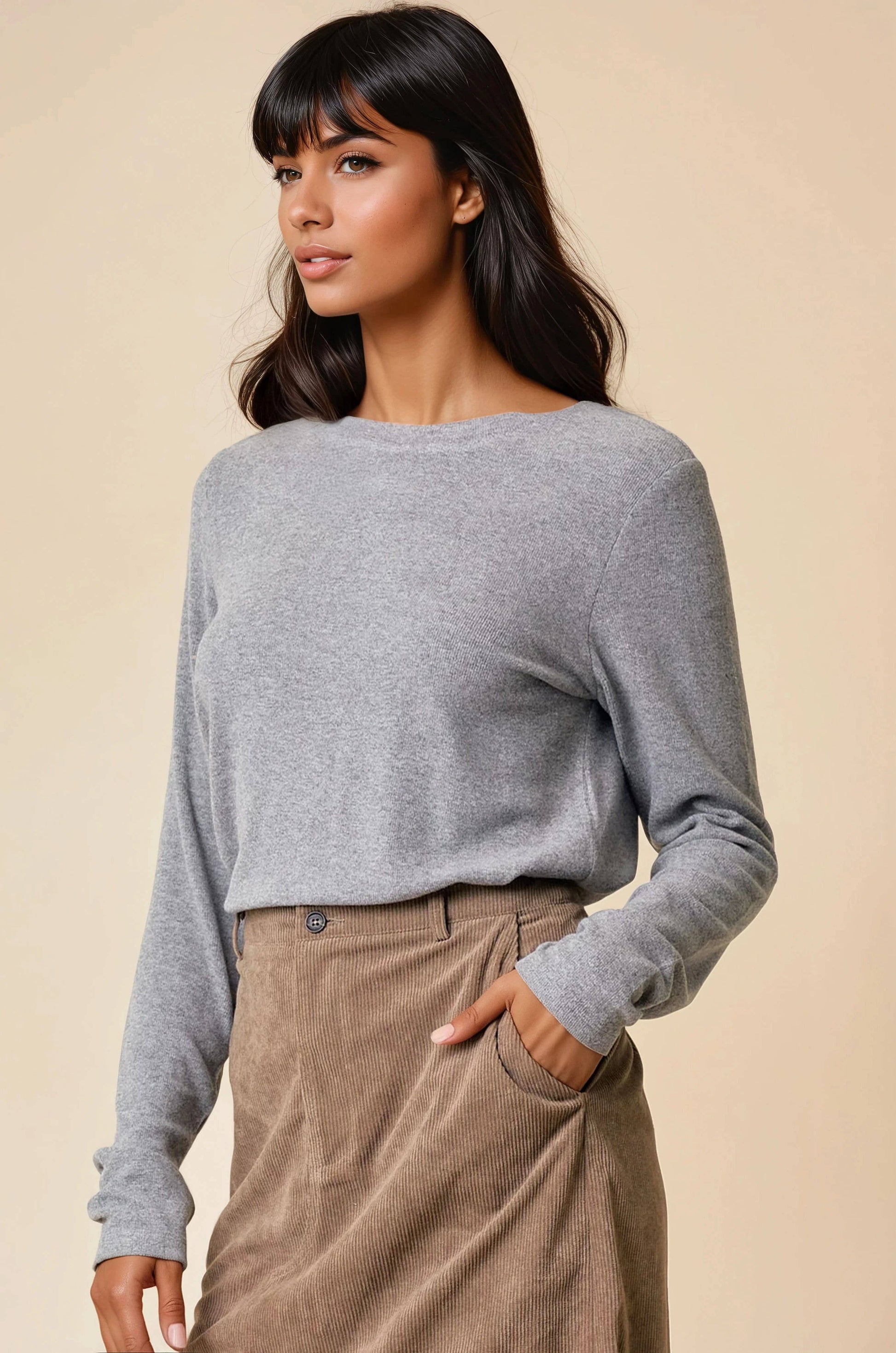 ROUND NECK KNIT TOP - Classic ribbed knit construction with a timeless round neckline - Long sleeves with fitted cuffs for comfort and style - Versatile slim fit design that can be dressed up or down - Soft, stretchy fabric for all-day comfort