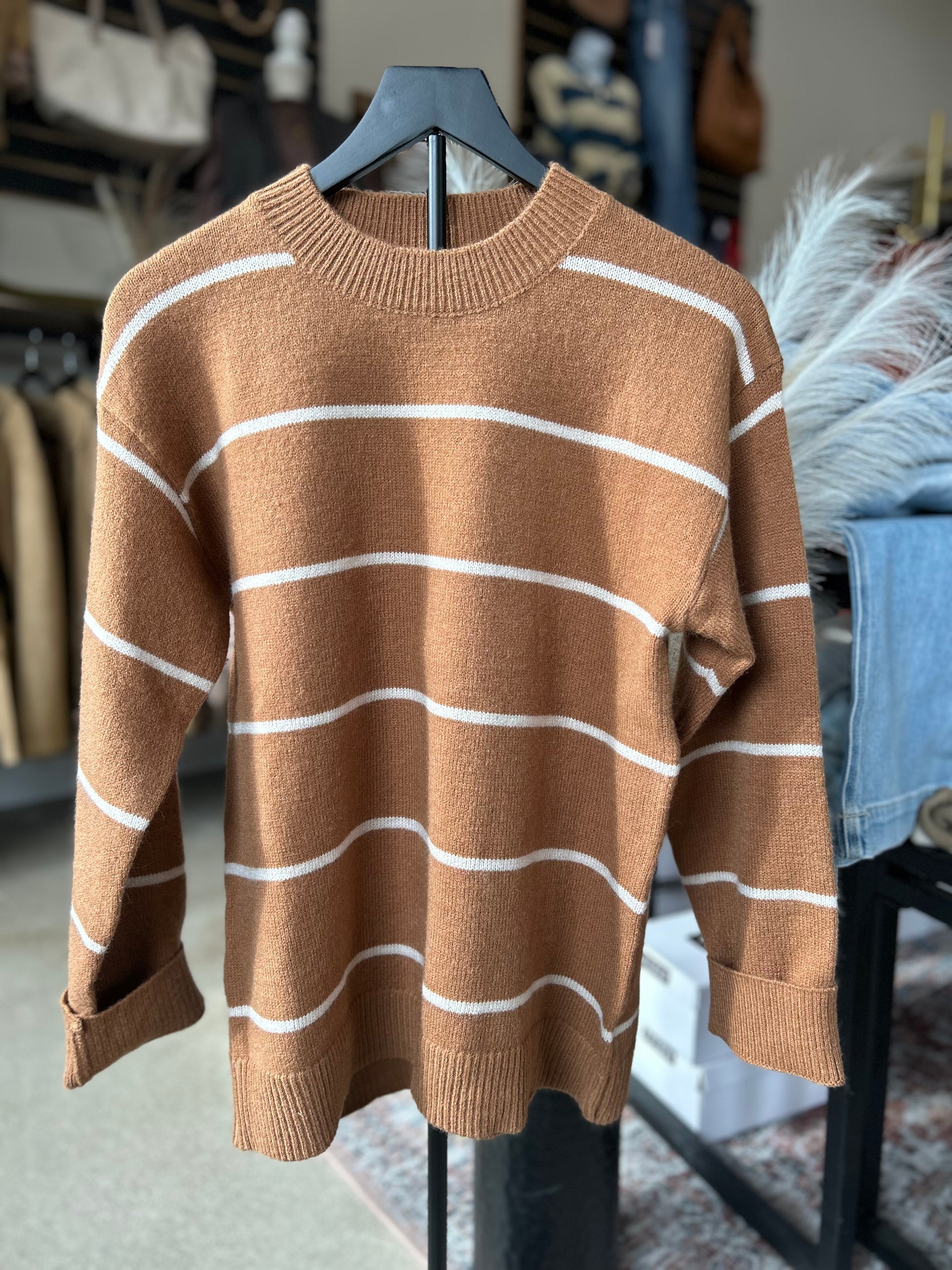 Timeless stripe sweater featured in a loose fit. Sure to be your go-to pullover to take you from season to season, this cool and classic piece is perfect to pair with anything from a skirt to shorts to structured denim.