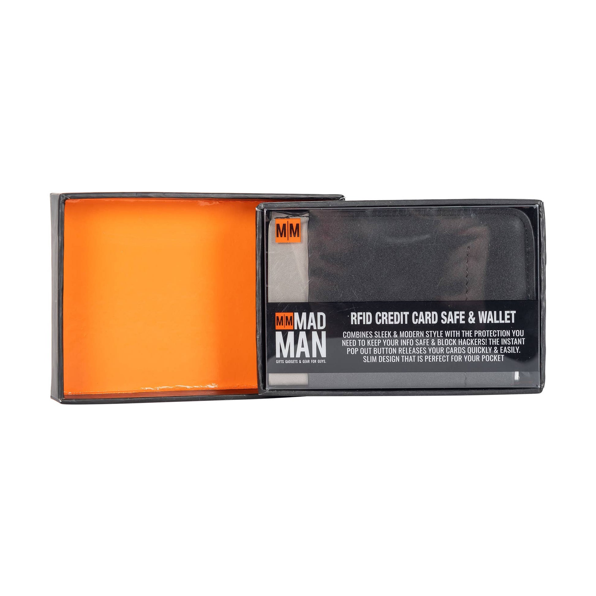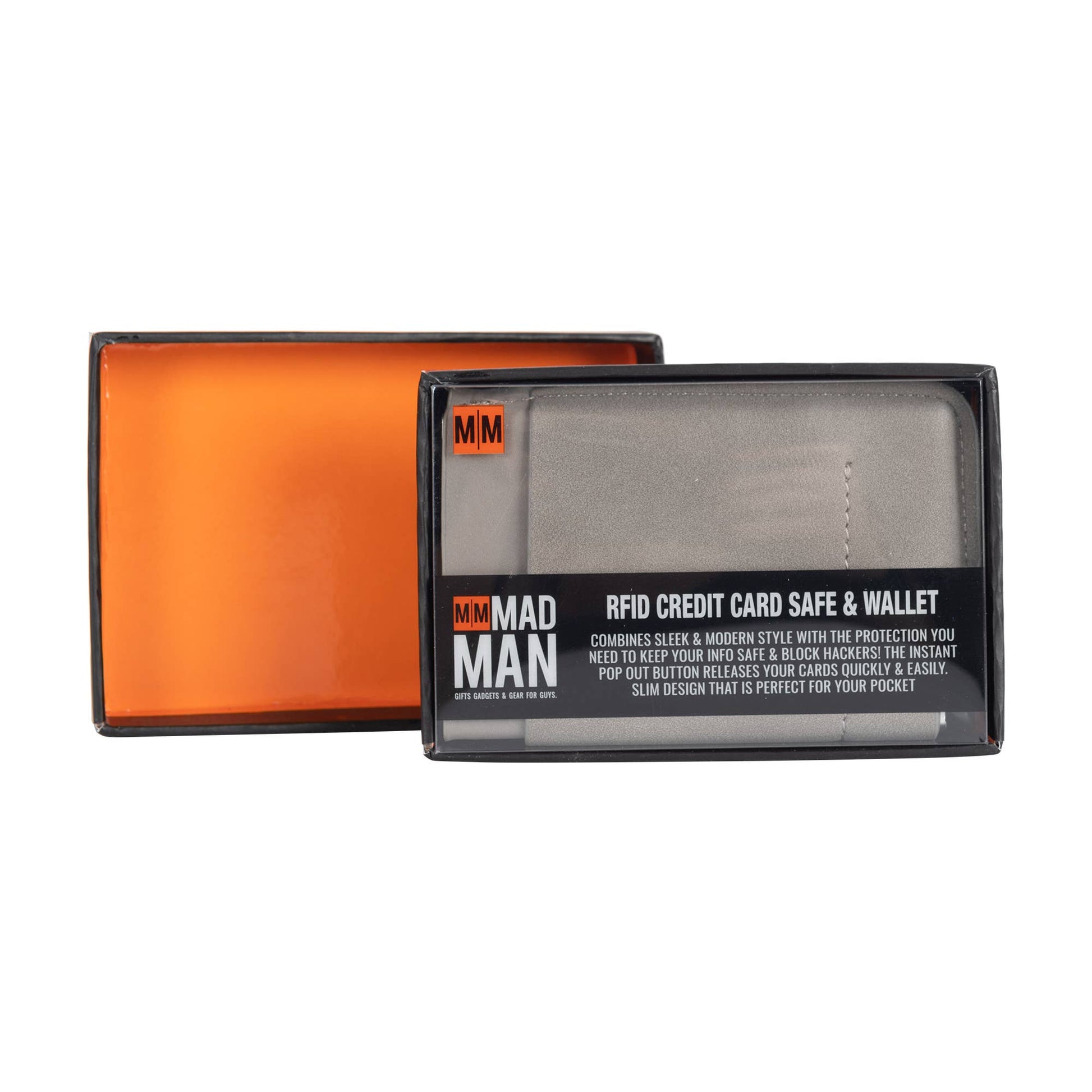 Today your privacy is more important than ever which is why Mad Man designed the Card Blocker RFID Auto Wallet. It combines sleek and modern style with the protection you need to keep your info safe! Instant POP out button releases your cards quickly and easily. Slim design that perfect for your pocket