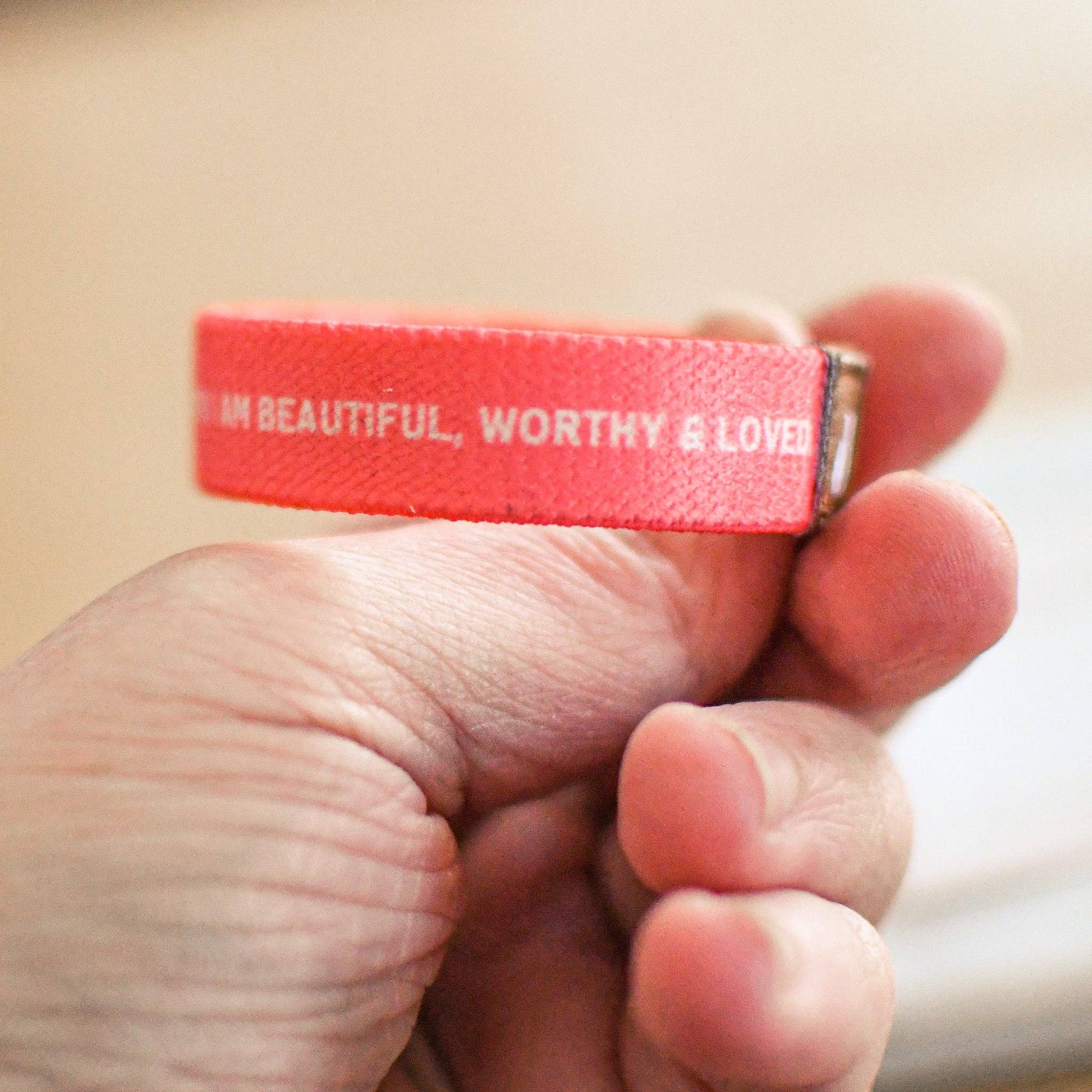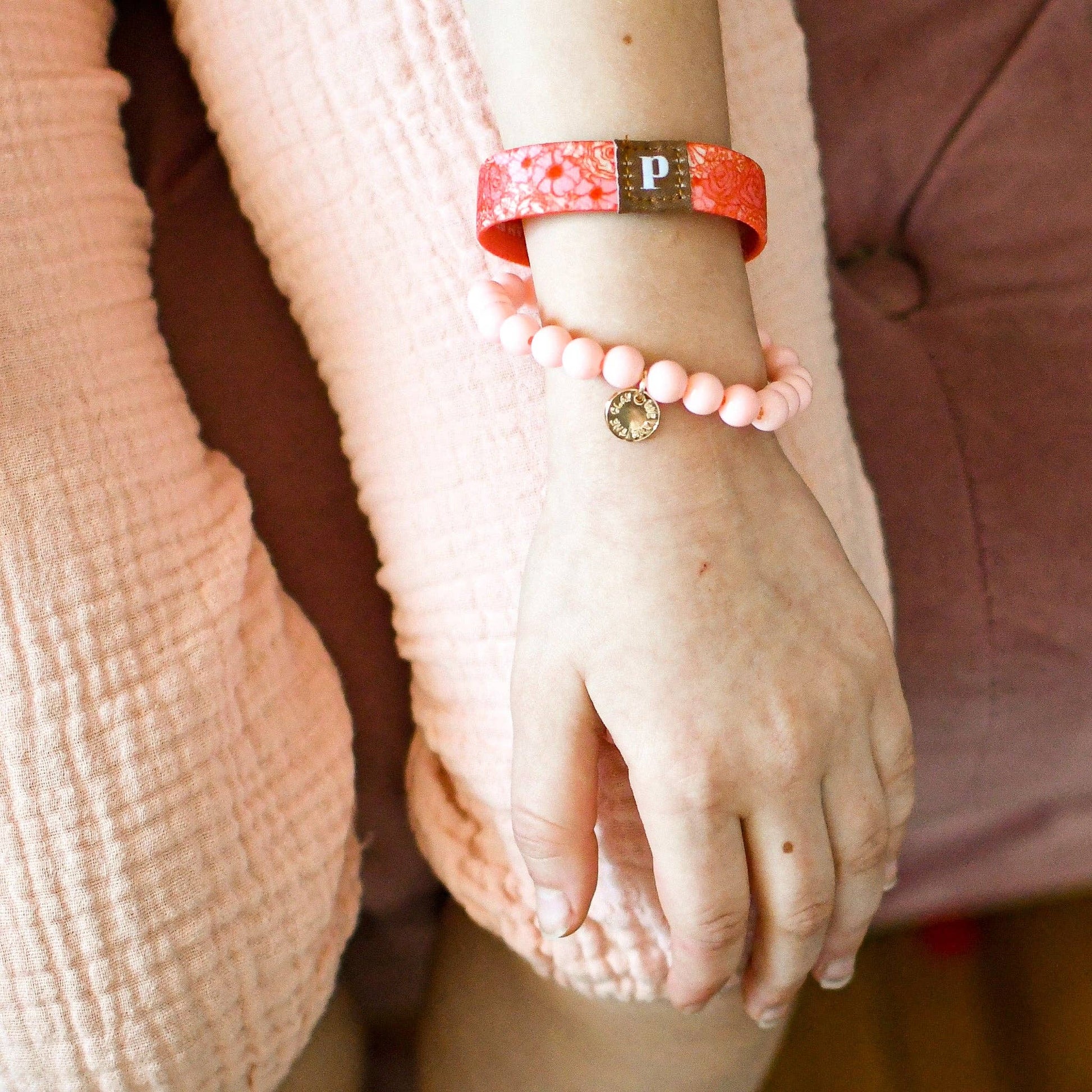 This comfy elastic bracelet is made to fit little girls age 6+ and features a beautiful floral design but can also be flipped to reveal a special declaration hidden on the inside: