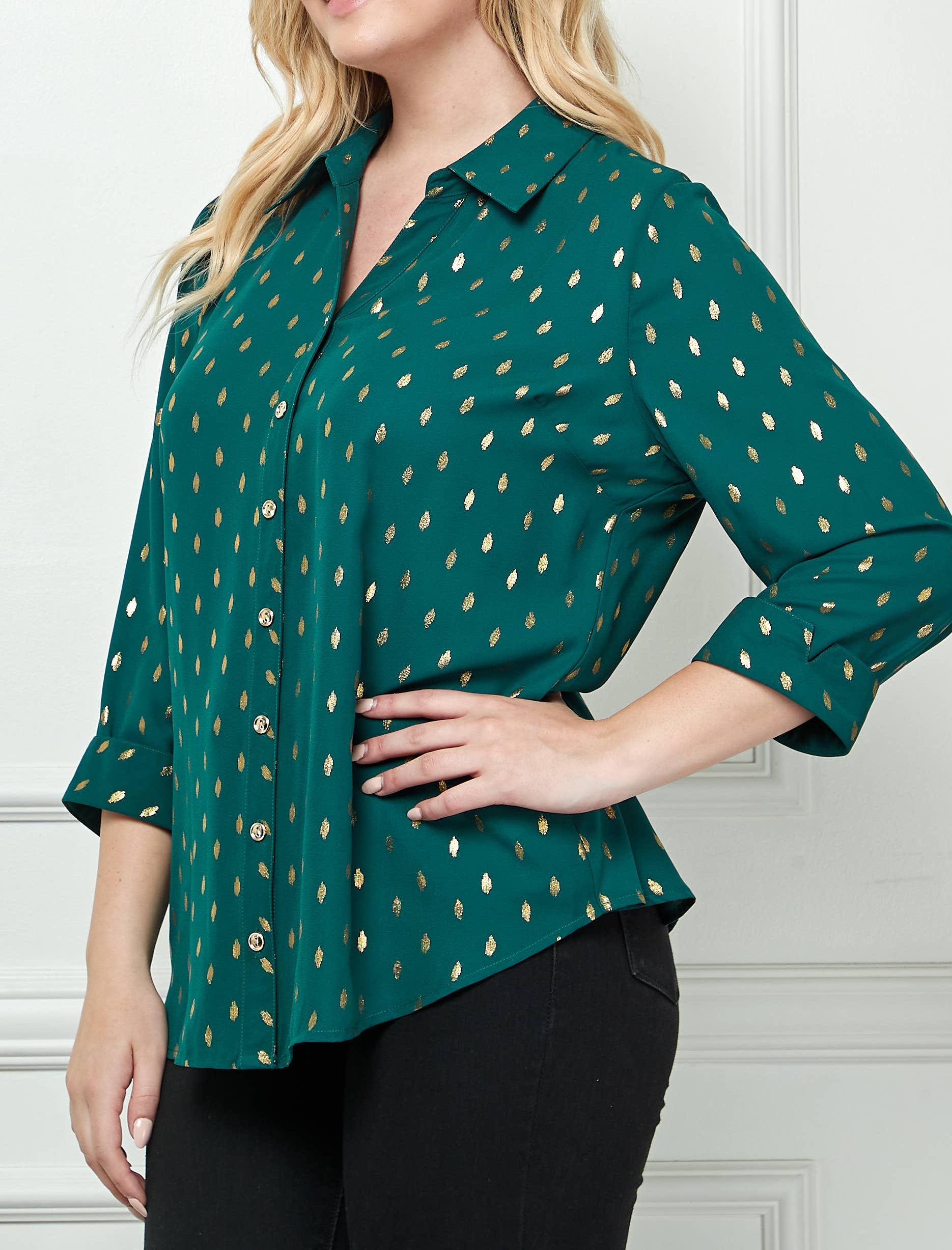 PLUS SIZE JOHNNY COLLAR BUTTON FRONT SHIRT