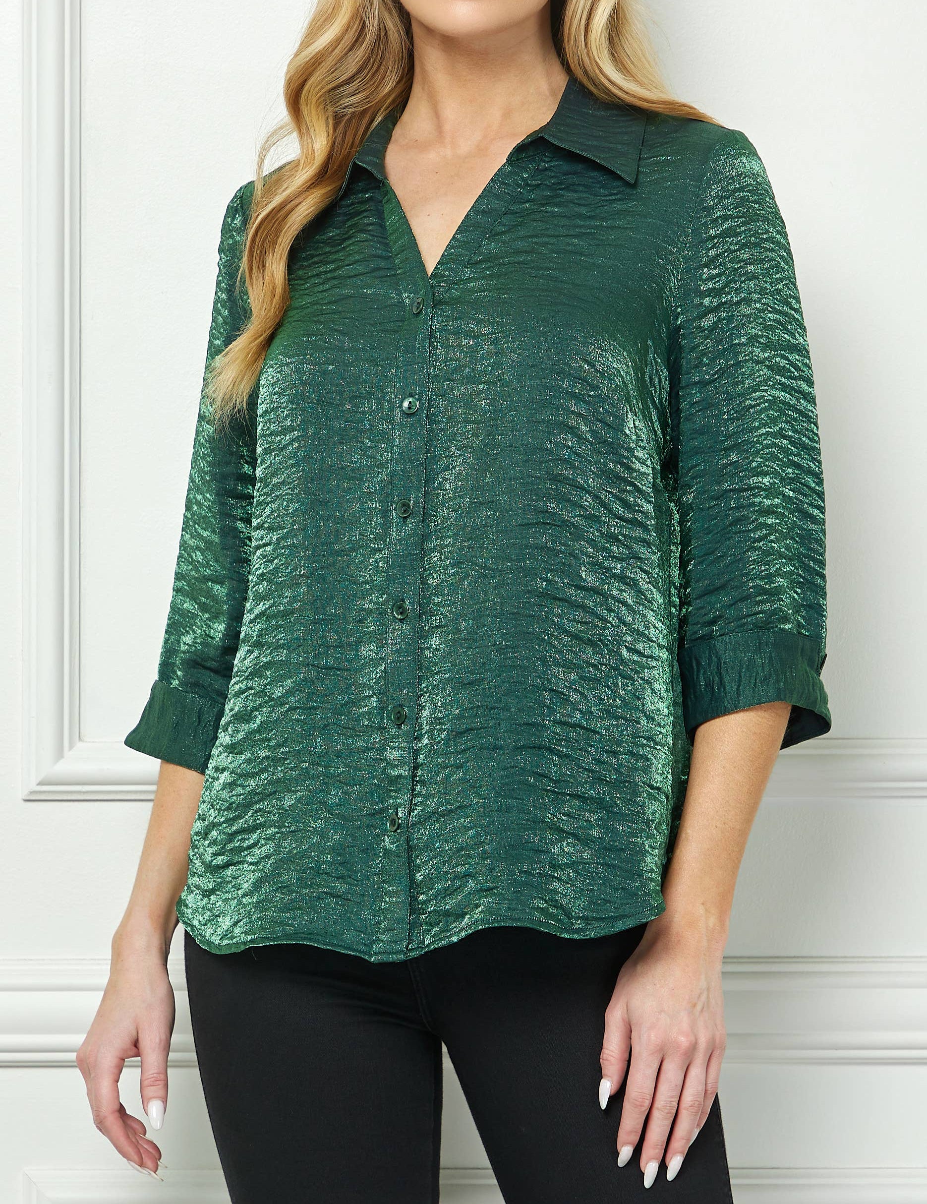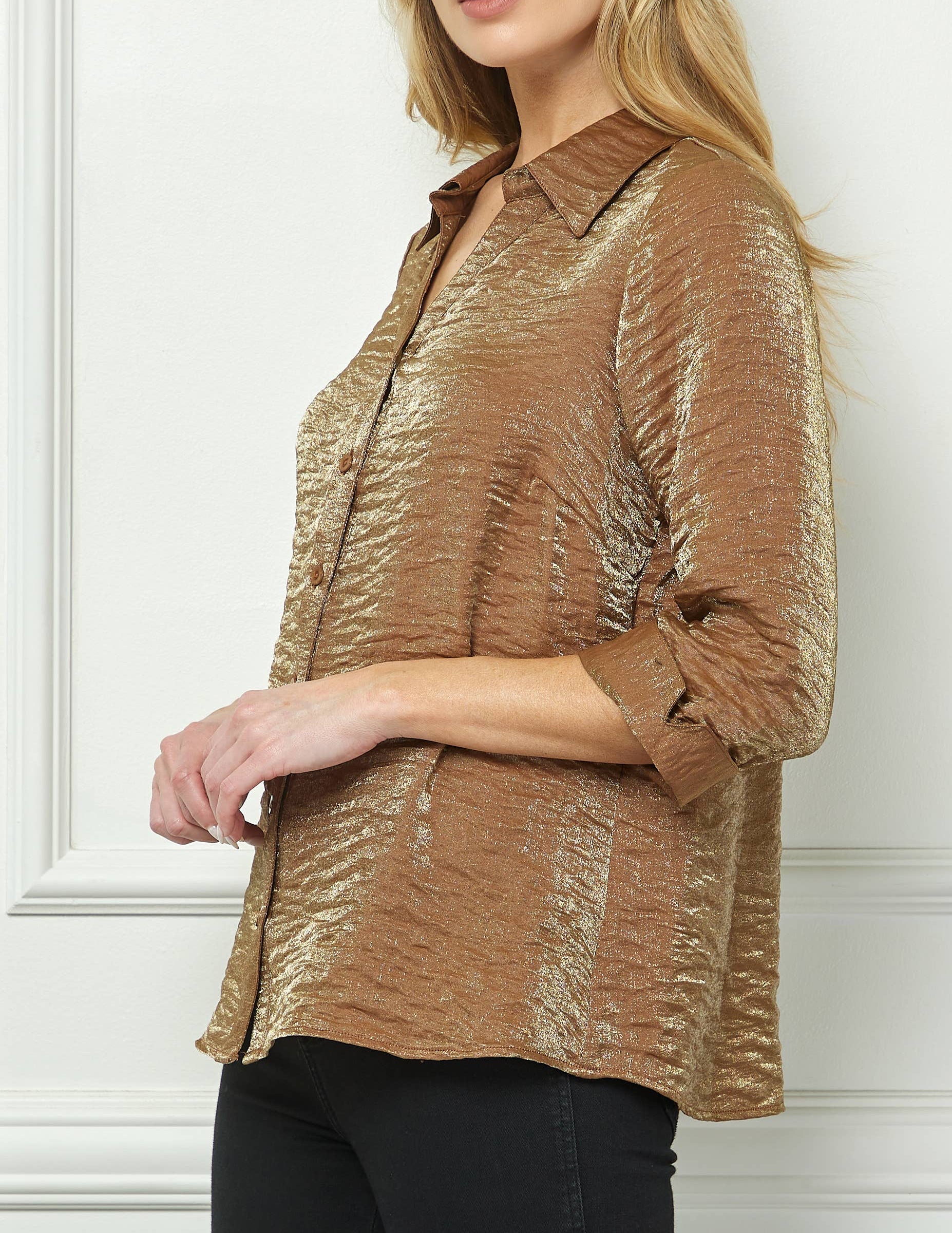 Perfect for holiday celebrations, cocktail evenings, or chic social gatherings, this blouse pairs effortlessly with everything from wide-leg trousers to a sleek pencil skirt. Whether you're toasting under string lights or mingling at a festive dinner, this versatile piece brings the glow to every occasion.