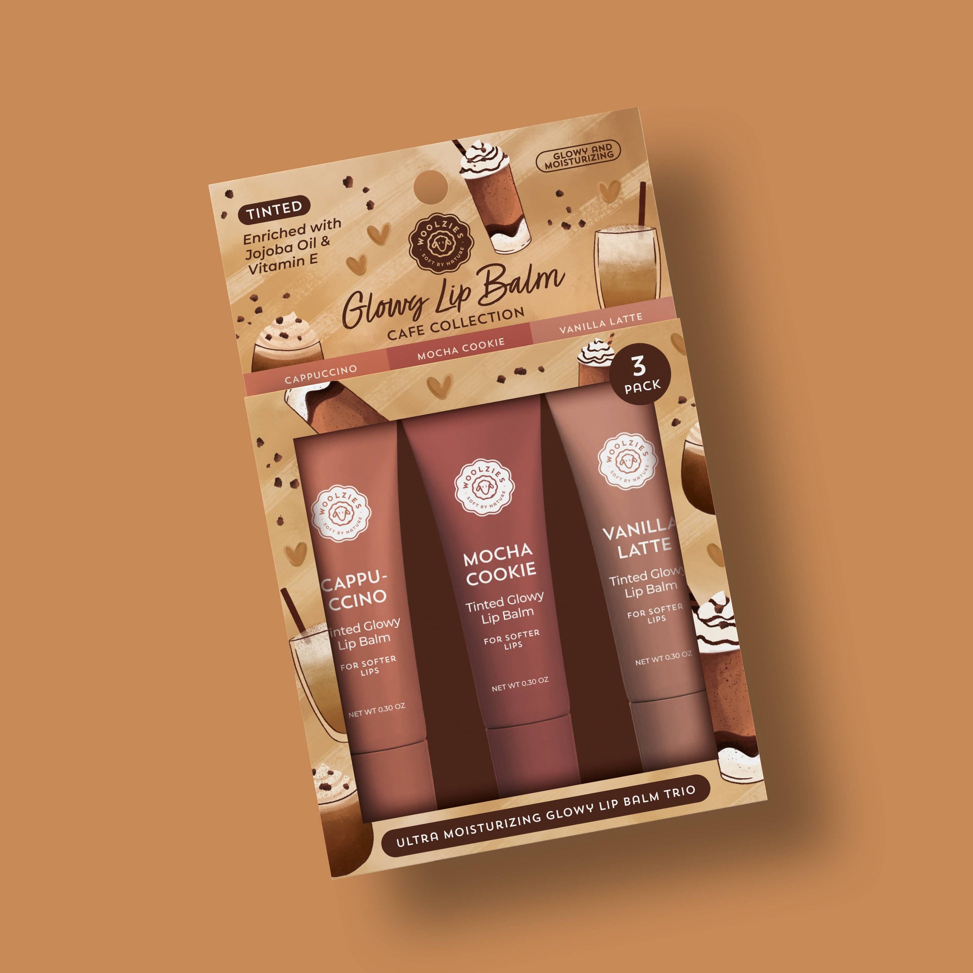 Give your lips a comforting glow with our Glowy Lip Balm Café Collection – a trio of tinted lip balms inspired by your favorite café treats. Each balm delivers a sheer wash of color, smooth hydration, and dessert-worthy flavor in one swipe.